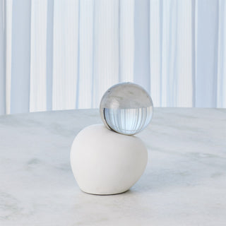 The Meringue Sculptures are whimsical pieces of art constructed of plaster with a white finish and crystal spheres.