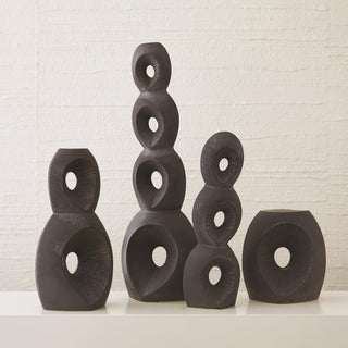 Inspired by ancient, spiritual monuments, the Totem collection of sculptures and vases are crafted of porcelain finished in a highly reactive black-bronze glaze.