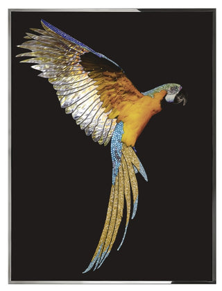 Plexiglass base with inserts in artistic glass, Swarovski crystals, mother of pearl. Stainless steel frame
