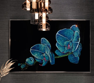 Plexiglass base with inserts in artistic glass, Swarovski crystals, mother of pearl. Stainless steel frame