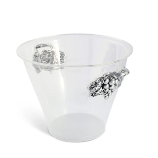 Celebrate with timeless elegance by stowing champagne in this grape handle acrylic ice bucket. Intricately detailed aluminum grapes comprise the handles to mesh with vineyard and Tuscan-inspired themes and enable easy carrying from counter to table.