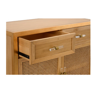 Add warmth and elegance to your space with the Petite Caned Buffet, designed by Kristi Nelson. Crafted from natural oak with subtle gold leaf accents, this buffet combines style and functionality with: