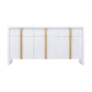 - A stylish raffia covering on the doors, offering texture and visual interest
