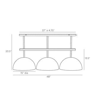The Vega chandelier redefines modern coastal style with its billiards-inspired design. This stunning linear fixture features three bowl-shaped shades meticulously hand-crafted from honey rattan, contrasting beautifully with the white gesso interior. The rattan wraps around the pipe suspension that pierces through two walnut-stained wood planks, adding a touch of organic elegance to any space. Each finish may vary, providing a unique character to this exquisite piece.