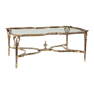 Serpentine Antique Finished Cast Brass Cocktail Table with Inset Glass Top