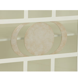 - Moon phase detailing on windowpane glass doors for a unique touch