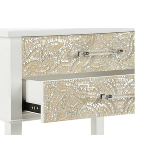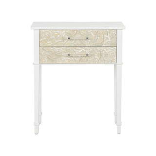The Pembroke Side Table combines elegance with craftsmanship, featuring a clean white finish and stunning mother of pearl detailing. Designed by Bill Cain, this table brings a refined touch to any room with: