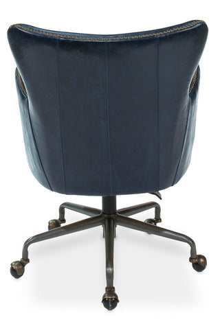 Will Nevill ever get his work done? This chair offers comfort, practicality and looks. The cover is luxurious Navy leather. The five pronged base offers stability. Casters. Pure Aniline top grade cow leather. Avoid direct exposure to sunlight / heat some color variation is common and acceptable on vintage leather. Pure Aniline top grade cow leather. Avoid direct exposure to sunlight / heat some color variation is common and acceptable on vintage leather.