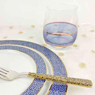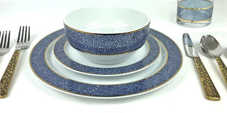 The beautifully mottled indigo blue combines with the 24k gold edge, creating function and form with a touch of bling.