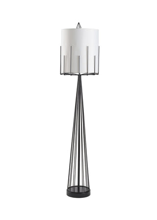The Otis Floor Lamp is a bold fusion of industrial chic and contemporary sophistication. Featuring a striking wireframe design finished in satin black iron, this 65-inch tall floor lamp delivers architectural flair to any space. Its airy structure is elegantly topped with an off-white linen drum shade, creating a beautiful contrast that softens the overall look.