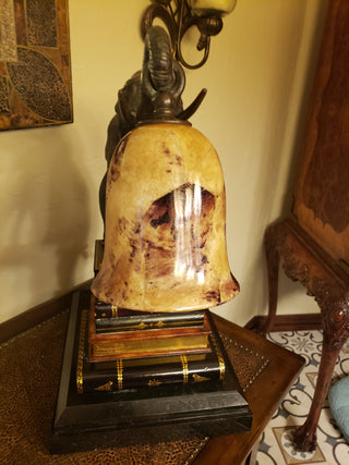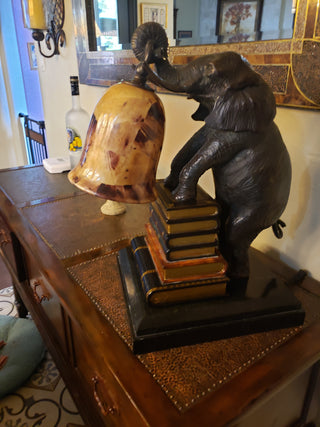 Verdigris Patina Brass Elephant Decorative Lamp, Penshell Shade