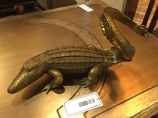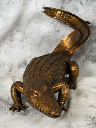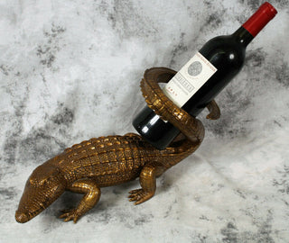 Elevate your living space with the Twisted Crocodile Wine Holder by Maitland-Smith, a captivating addition that exudes both functionality and charm. This exquisite wine holder is meticulously crafted from light finished cast brass, ensuring durability and a luxurious appeal.