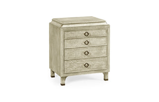 Small chest of drawers in pewter oak, featuring a small hidden top drawer, with stainless steel handles & caps on the feet.