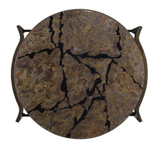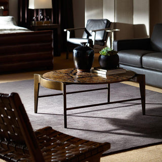 The unique design of the Flow Cocktail Table is complemented by its sturdy metal tube base, providing both stability and a modern touch. The antiqued brass finish adds warmth and character, making it a versatile piece that enhances both contemporary and traditional interiors.