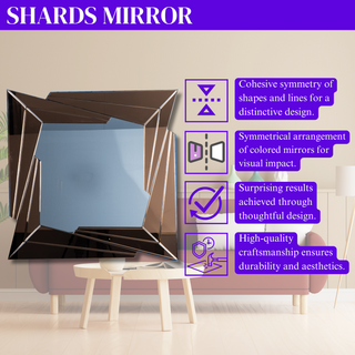 Elevate your home with this distinctive piece today! The mesmerizing design of our Shards Mirror is guaranteed to add a vibrant touch to any space. Impress your guests with its cohesive symmetry and distinctive look. Transform your home into a work of art and order yours today!