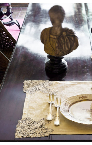 Placemats with Jacquard coquillage Jesurum 100% cotton with Caravaggio external motifs on 4 sides