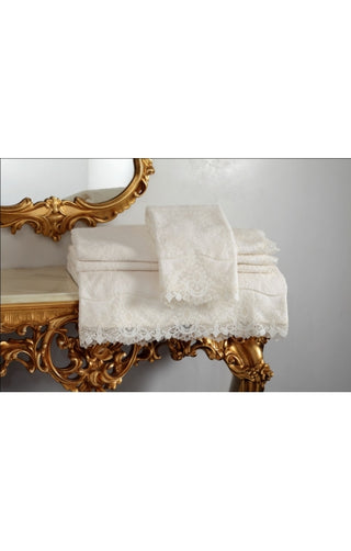 Fenice set of 3 face towels with bias finishing and one stripe of lace on one side