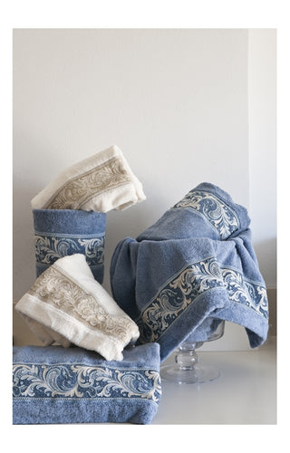 Bath Towel with 1 band of Venice lace on one side, with bias finishing.