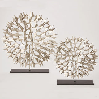 These sculptures were inspired by a found fragment from a vintage sculpture. The use of negative space gives these a light feel and a versatility of application.