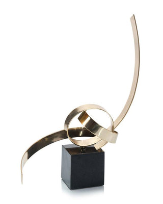 The perfect accent is found in this polished brass ribbon sculpture standing on a black marble base.