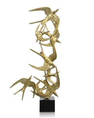 39.5"H X 20"W X 6"D A beautiful flock of Swallows in Flight mounted on a black granite base creates a stunning sculpture.