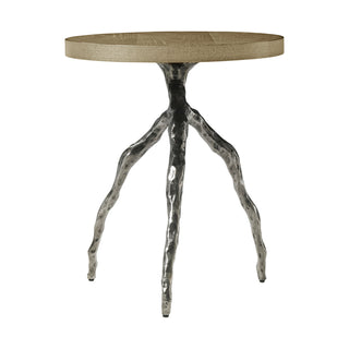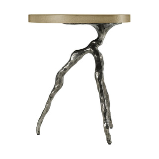 Contemporary accent table made of figured ash available in Dune or Earth with cast metal base in our Volcanic finish.