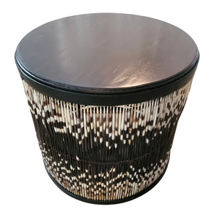 Round Ivory Crackle Ceramic Laquered Lamp Table