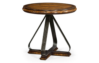Round Side Table with Iron Base in Rustic Walnut