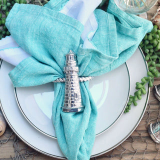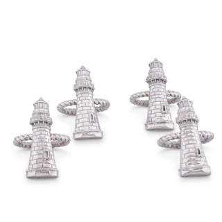 Create a feeling of coastal calm as you dress your table with Arthur Court's Set of 4 signature aluminum alloy Lighthouse Napkin Rings.