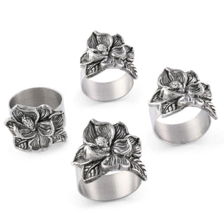 These Metal Magnolia Napkin Rings are the perfect addition for those with a spring style . Strong, sturdy, and durable buy a set of these napkin rings to accommodate all of your guests. These Magnolia napkin ring will infuse your dining area with a elegent appearance. Handcrafted of pure metal