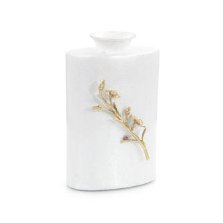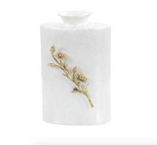 Elevate your home décor with the Blooming Vase, a sophisticated blend of artistry and elegance. This stunning white enameled vase is adorned with a hand-carved, cast brass flower, creating a timeless and refined look. The contrast between the smooth, glossy enamel and the detailed brass embellishment adds a touch of luxury, making this vase an exquisite statement piece for any interior.