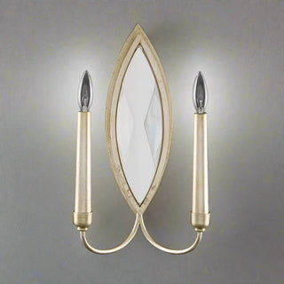 The Petaline Wall Sconce is a stylish, contemporary take on stunning natural motifs. Affixed to an ornate steel frame in a Champagne Silver finish, the piece evokes the look of an elegant flower petal through a gorgeous cut of clear crystal. This sophisticated statement piece features two lights displayed from two candle-shaped rods.