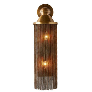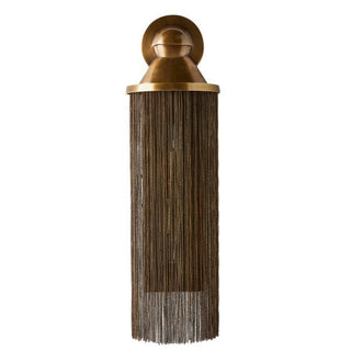 Inspired by Art Deco and Mesoamerican artistry, the Vanko Sconce is a striking wall fixture designed to make a statement. The sconce features an Aztec-inspired silhouette with a cast brass head in a vintage brass finish, complemented by a cascade of antique-brass iron fringe. Its damp rating makes it suitable for indoor spaces, though it can be used in limited covered outdoor areas. Perfect for adding character to hallways, dining rooms, or accent walls, this ADA-compliant sconce brings timeless elegance with a touch of cultural homage.