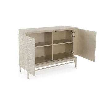 Palm Beach Cabinet – Elegant Fretted Limed Oak Cabinet with Gray Interior and Silver Leaf Accents