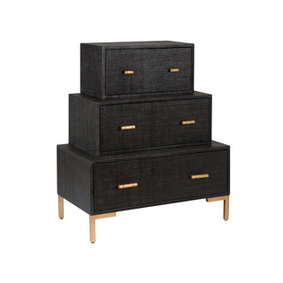 Three-Tiered Chest - Black Raffia with Antique Gold Metal Handles