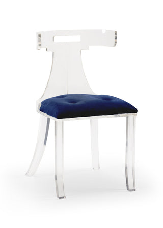 Reminiscent Of The Klimos Design, Elsa Chair Features The Elegant Curved Legs And Back Displayed In The Original Ancient Greek Arm Chair. This Clear Acrylic Chair Has A Delicate Look But Is Structurally Sound. A Blue Velvet Tufted Seat Cushion Has Been Added To Provide Comfort And To Continue The Modern Design Theme. This Versatile Chair Is A Great Addition To A Dining Table Or As An Accent Chair In Your Sunroom, Foyer Or Living Area.
